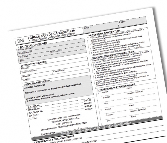 Candidaturas para poder recopilar los datos de los candidatos a ser miembro de BNI en pack de 50 hojas.